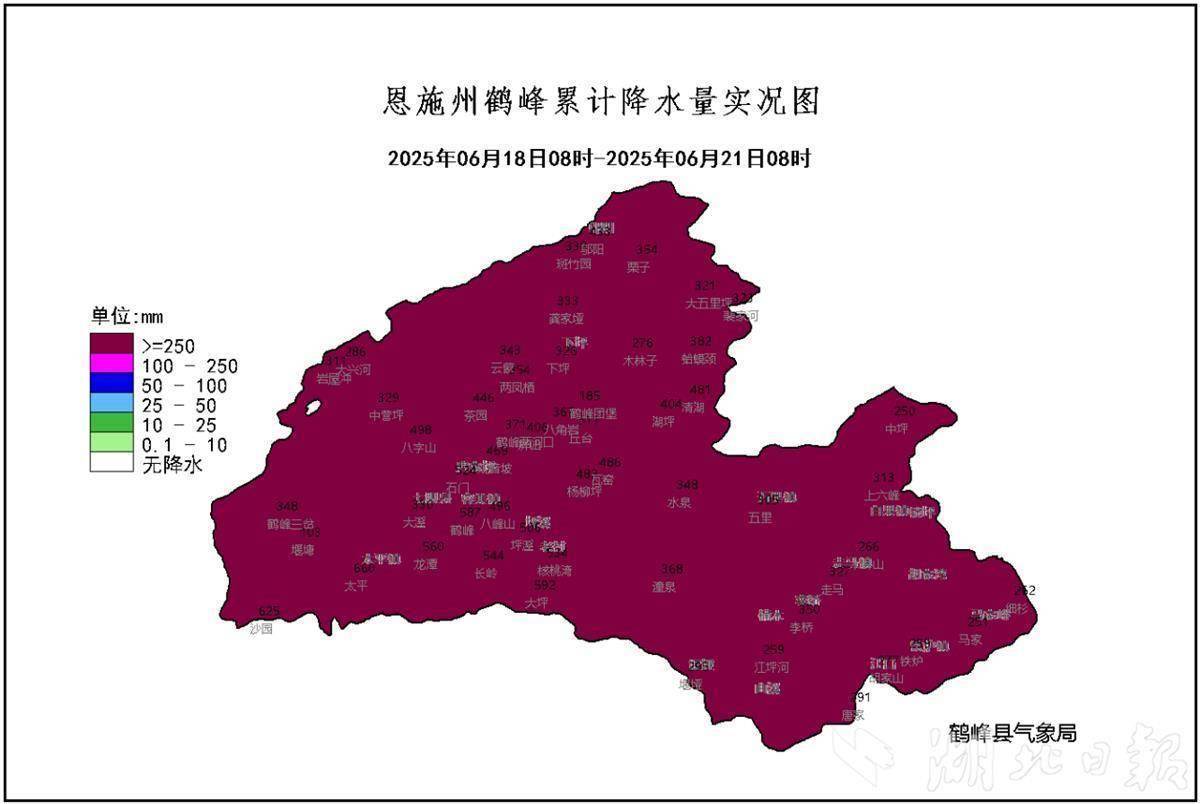 全省最大降雨量为鹤峰县太平镇660毫米