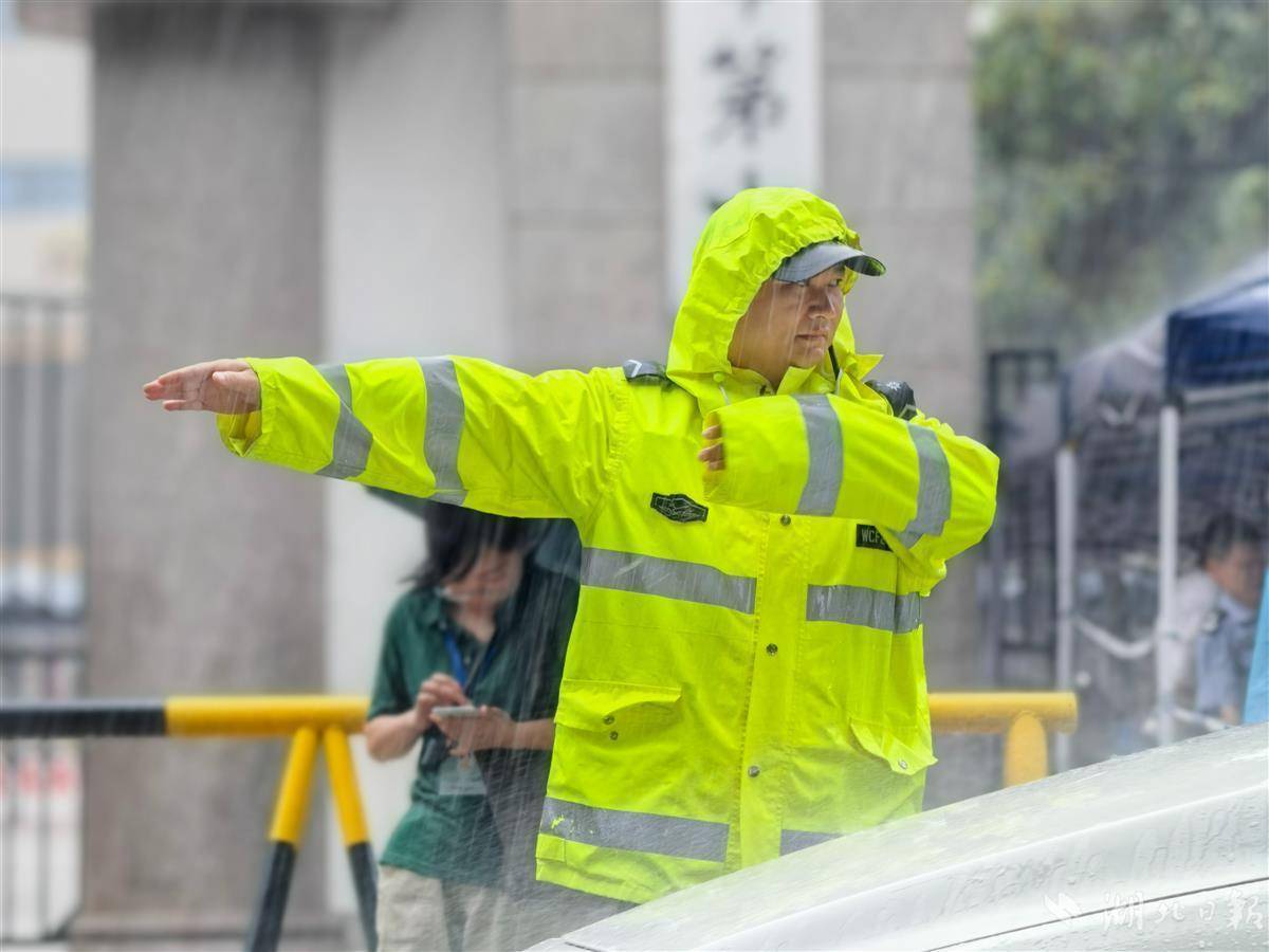 6月21日,武汉中考迎来第二个考试日。当雨点如鼓点落下,全市交警奔赴94个考点,在倾盆大雨中上演多幕暖心守护,勾勒出最坚实的安全防线。